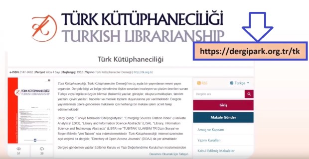 Türk Kütüphaneciliği dergisi DergiPark’ta yayın hayatına devam edecek